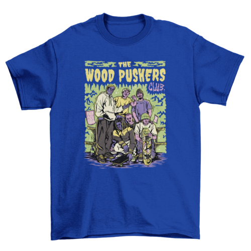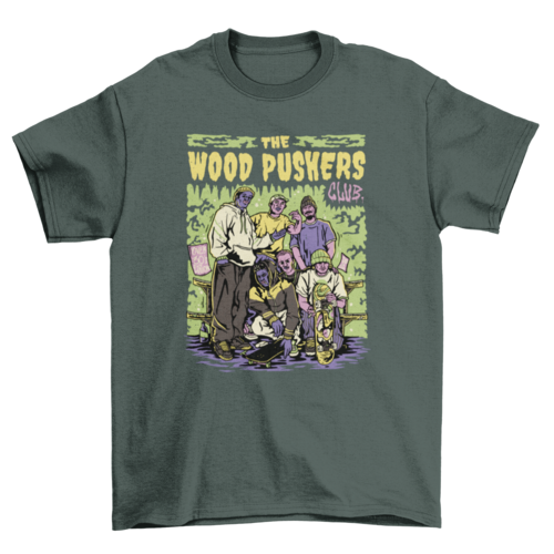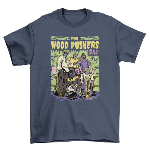 Cool t-shirt design featuring a group of friends with skateboards.