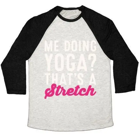 ME DOING YOGA THAT'S A STRETCH WHITE PRINT UNISEX TRI-BLEND BASEBALL TEE