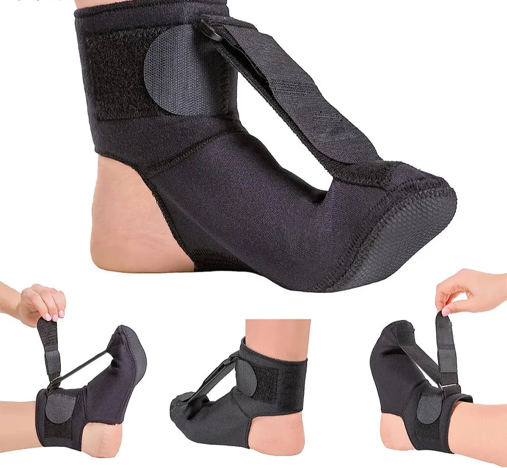 By keeping the foot in a dorsiflexed position overnight, it helps prevent the plantar fascia from tightening, reducing the first-step pain typically experienced in the morning.
